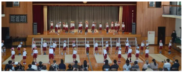 2年生 マット運動や跳箱、歌やダンスを披露しました。