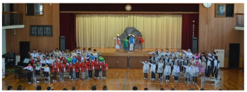 5年生 ソーラン節や合唱、合奏などを行いました。