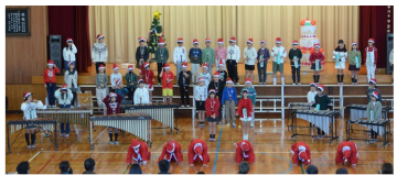 4年生 サンタクロースが登場し、クリスマスの音楽を発表しました。