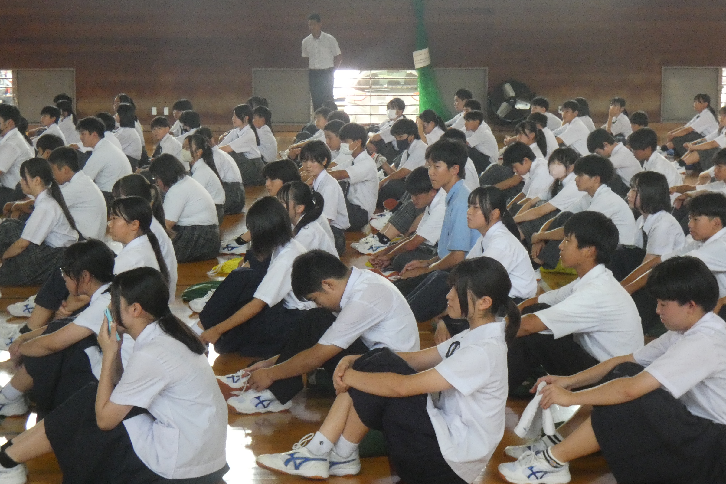 3年生対象に、性の教育講演会を行いました。講師に、学校薬剤師の大西 順子先生を招きし、お話をいただきました。性感染症の最新の情報や、性に関する知識、大切にしなければならないことなどについて、お話しいただきました。暑い体育館でしたが、3年生は真剣に先生の話に耳を傾け、自分自身のこれからの過ごし方などについて考えていました。