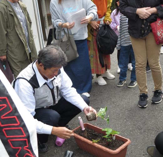 秋講座「プランターで”めっちゃおいしい”苺づくり」が行われました。 みなさん積極的に講師の方に質問されていました。