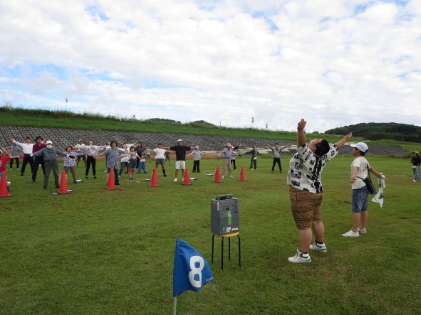 9チームに分かれてグラウンドゴルフを通して様々な世代が交流を深めまし