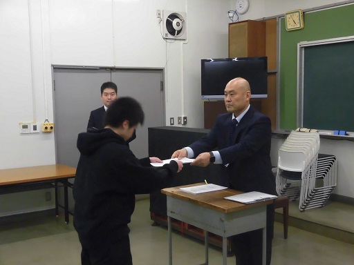 4月9日(木)、入学式を行いました。今年度は機械科16名、電気科10名の計26名の生徒が入学しました。新入生のみなさん、4年間一緒にがんばりましょう。