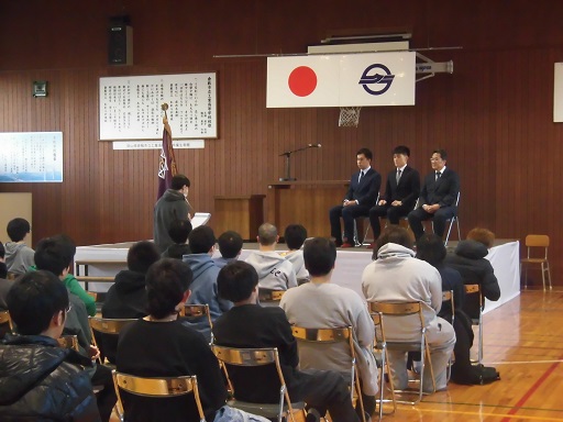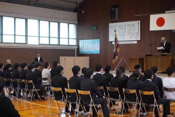 4月8日(水)、転科許可式がありました。転科生3名が参加し、校長先生から激励のお話をいただきました。その後、新任式・始業式を行い、新しい年度がスタートしました。続けて行われた転退任式では、お世話になった先生方からお話をいただきました。