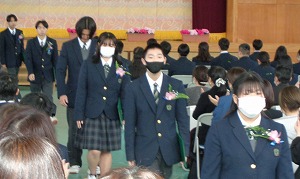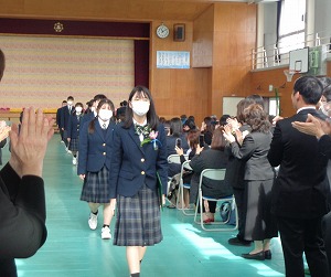 第76回卒業式が挙行されました。卒業生は生徒会の在校生が作ったコサージュを胸につけ、堂々と歩く姿が印象的でした。3修コース、4修コース合わせて28名の生徒がそれぞれの決意を胸に巣立って行きました。卒業生の様々な場面でのご活躍をお祈りしています。