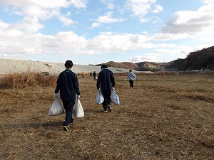 風が強く寒い中ではありましたが天候にも恵まれ、多くの生徒がボランティア活動に参加しました。