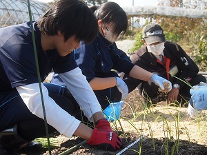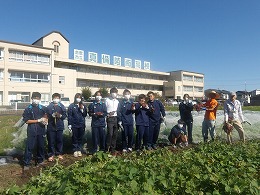 今年6月3年生農業選択者がサツマイモの鳴門金時を植え、その後、すくすく成長してくれました。今夏も酷暑でしたので、葉の状態を見て葉がしおれてきそうな時は水を与えて順調に大きくなるように管理してきました。無事に交流会ができて、生徒も楽しく取り組み、小学生にも喜んでもらえて本当に良かったです。