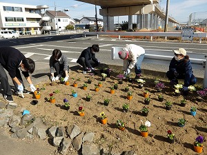 まちづくり協議会の方や青少年育成センターの方々にも参加していただき、学校周辺のゴミ拾いや駅周辺の溝掃除、花の苗植えなどに積極的に取り組んでいました。地域の方々と協力しながらの活動となり、より一層充実した地域交流となりました。