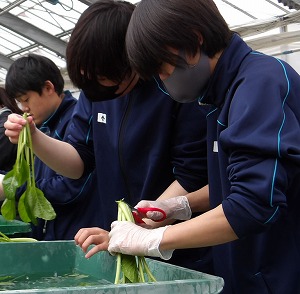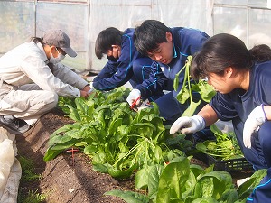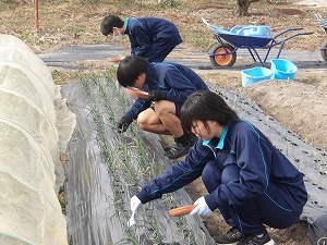 今年も秋冬野菜の収穫やタマネギの栽培管理をしています。来年度に向けてハウス内の除草や土の入れ替えを行い、実習で春夏野菜の栽培に向けて準備をしています。