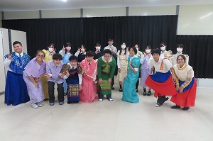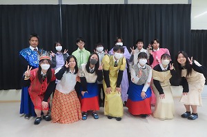12月1日に、3修3年生と4修3・4年生が英語aの授業でフィリピンのフォーマル衣装を着てみました。フィリピンには7,640の島があり、それぞれの場所で異なる民族衣装があるそうです。今回着た衣装は、どちらかというとより近代的な衣装で、結婚式やお祭りの際などに着用する衣装だそうです。生徒たちは、色とりどりの衣装を手に取り、一人2着ずつほど着て、写真を撮って楽しみました。日本の着物や浴衣と違って、生地が薄くて着やすい、スパンコールがキラキラしてきれい、などといった感想があり、貴重な体験をすることができました。
