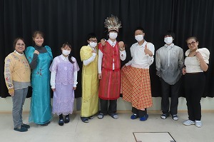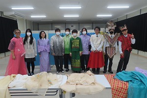 英語の授業で、フィリピンの民族衣装を体験しました。島や民族によって異なる民族衣装があることを学び、実際に着用することで、フィリピンの気候に合わせた様々な素材が使われていることを知りました。最初は恥ずかしそうだった生徒も、「次はあれを着たい!」と楽しそうに衣装を着用していました。「衣・食・住」の一つを体験し、フィリピンの文化への理解がまた一つ深まる良い体験になりました。