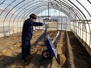 真備陵南高校の農場ではハウスや畑を使って様々な作物を作っています。