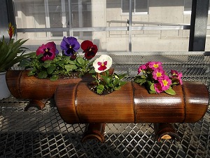 真備町緑化協会のご協力のもと、竹のプランターに本校で栽培した草花を入れて校内に飾っています。今年も農業の力で生徒に活躍の場を、地域を盛り上げる、そんな1年になりますように…
