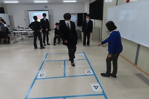 卒業学年を対象に、青山商事株式会社(洋服の青山)新倉敷玉島店店長の高坂知様をお招きして、社会人として必要な着こなし・身だしなみの知識を理解・実践することを目標に御講演をいただきました。入社式など式典や面接などの場面ではどのようなスーツが望ましいか、ネクタイの持つ意味、マスクをつけている状況でのコミュニケーションの取り方などを学びました。またネクタイを結ぶ練習をしたり、生徒自身がモデルになって着こなしを実践したりしました。今回学んだことを4月からの新生活に活かしてもらえたらと思います。