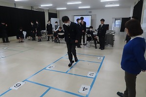 3修3年生と4修3・4年生が英語αの授業で、フィリピンの伝統的な遊び「ピコ」を体験しました。日本の「ケンケンパ」に似た遊びで、地面に描かれた枠線内の番号に順番に自分の的(パマト)を入れ、ケンケンパをしながらそのパマトを拾って戻ってきます。すべてのマスをクリアしたら終了です。今回は消しゴムを的にしましたが、生徒たちは、的を思った通りの番号の枠に入れるのに苦戦していました。慣れてきてルールがわかってくると、クラスメートと楽しく競い合いながらゲームを楽しみました。