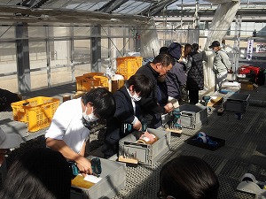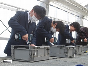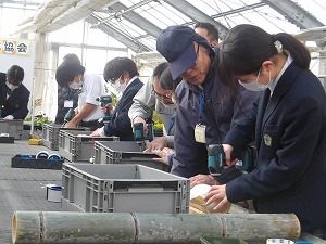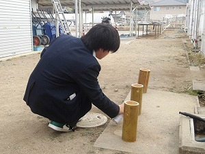 倉敷市真備町緑化協会・真備支所建設課の皆様にご協力いただき、竹のやしろ代表の出井様を講師としてお招きして、3年生農業選択者が竹あかり作りをしました。