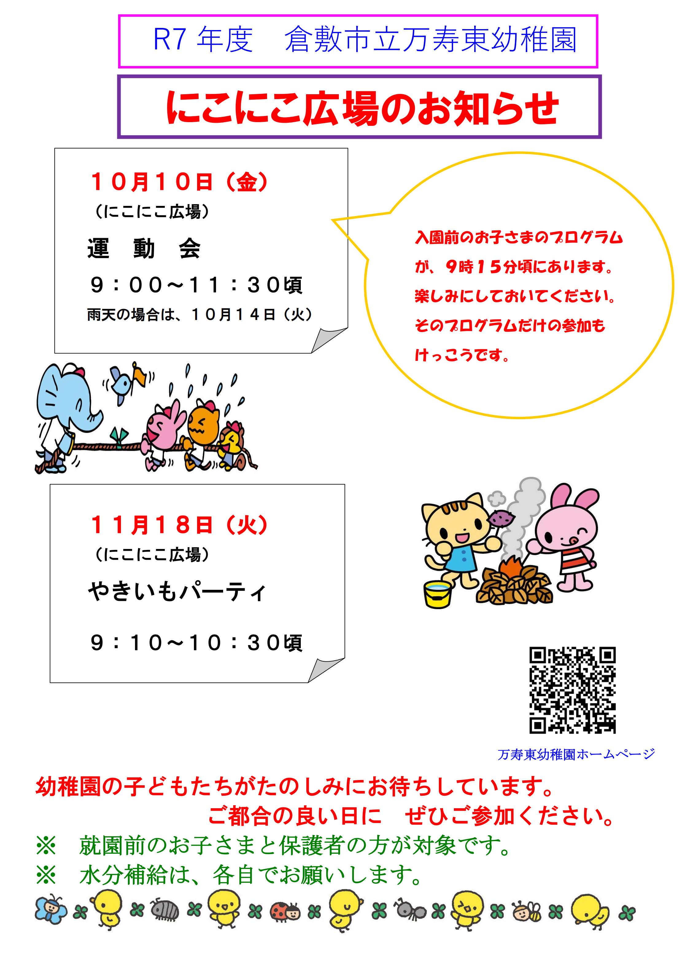 1 場 所 倉敷市立万寿東幼稚園(住所:倉敷市大島202-2 TEL:424-3179)