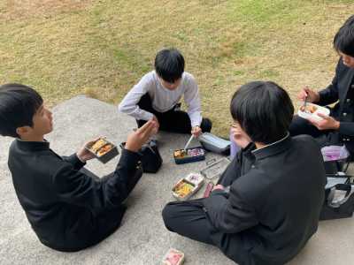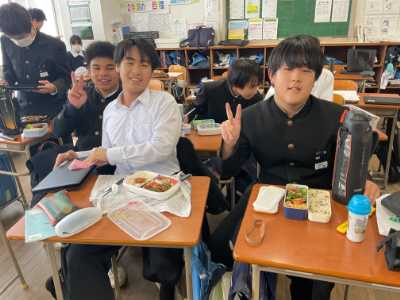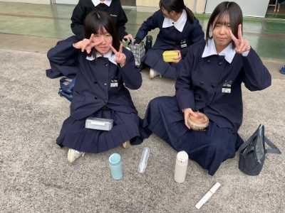 3年生は卒業まで残りわずかになってきました。少し肌寒かったですが、仲良く中庭で食べていました。