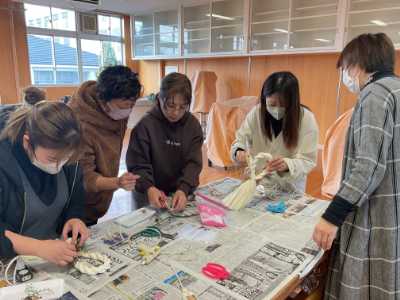 今日午後からは、PTA家庭教育学級でお正月リース作りがありました。色とりどりのリースをお母さん方はおしゃれにアレンジしていました。