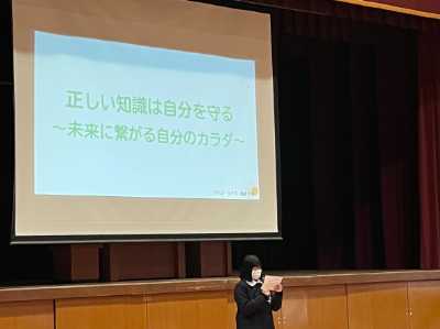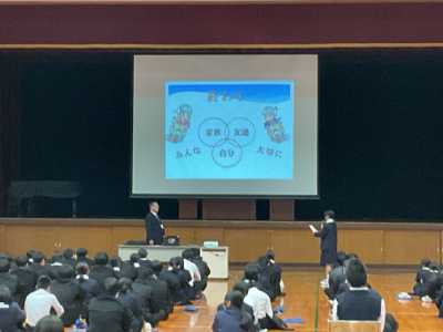 さて、先週の金曜日に学校保健委員会が行われました。性教育アドバイザー、看護師、看取り士の鳥越千裕先生を講師にお招きし、性教育についてご講演いただきました。自分の体は自分で守ること、自分らしさを大事にすることという大切なことをわかりやすくお話してくださいました。また、性の多様性や相手を思いやる気持ちなどについて改めて考えるよい機会となりました。準備や片づけ、司会進行やあいさつなどを担ってくれた保健体育委員の皆さん、ありがとうございました。
