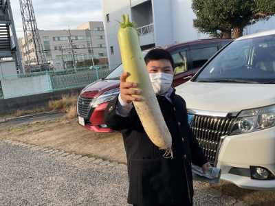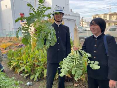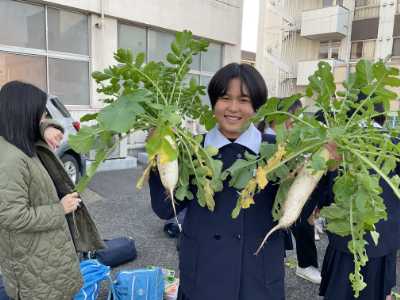 今日の放課後、2年生は技術の授業で栽培した大根を収穫しました。立派な大根もあれば可愛らしい親指くらいの大根もありましたね。