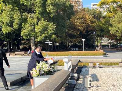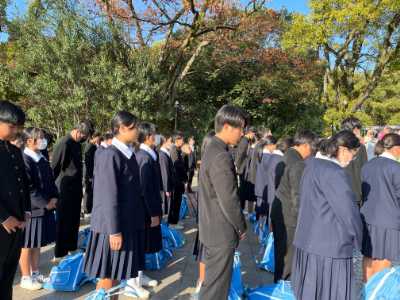 今日は2年生の広島平和学習です。朝は冷え込みましたが、日頃の行いが良いのか好天に恵まれて絶好の校外学習日和となりました。現地では生徒全員がよく考え、よく学んだ充実した一日になりました。保護者の皆様、これまでの準備やご配慮、また当日早朝にも関わらず送迎等をしてくださり、ありがとうございました。