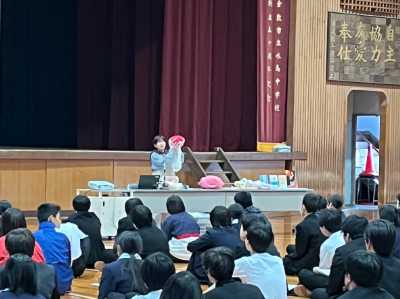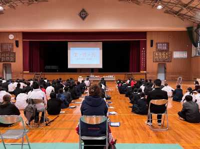 今日は2学期の給食最終日でした。午後からは非行防止教室が行われ、岡山県警少年課の香山さんがご講演くださいました。中学生に多い犯罪や最近増えつつある闇バイトやAI悪用による犯罪など事例をあげてわかりやすくお話ししてくださいました。犯罪者にならない、犯罪に巻き込まれない、そして自分・家族・友達を大切に生活していきましょう。