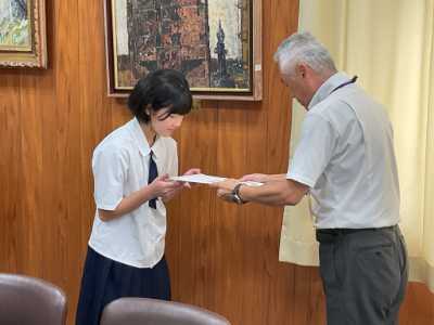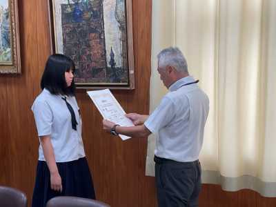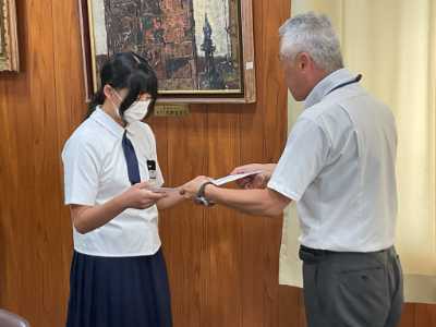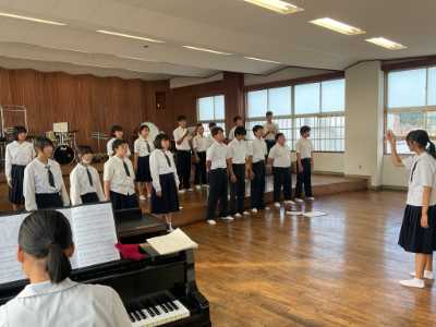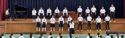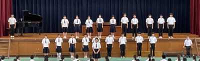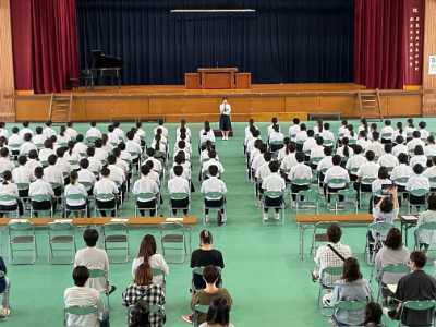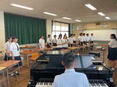 今日から2学期です。大掃除の後、表彰と始業式がありました。今回は熱中症対策のため、校長室よりオンラインで行いました。校歌斉唱は生徒会長の口伴奏により、表彰された6名の生徒+生徒会長が代表として校長室で歌いました。教室でもしっかり歌ってくれたことでしょう。2学期は文化祭に体育会と大きな行事も控えています。また元気に楽しい学校生活を共に過ごしていきましょう。