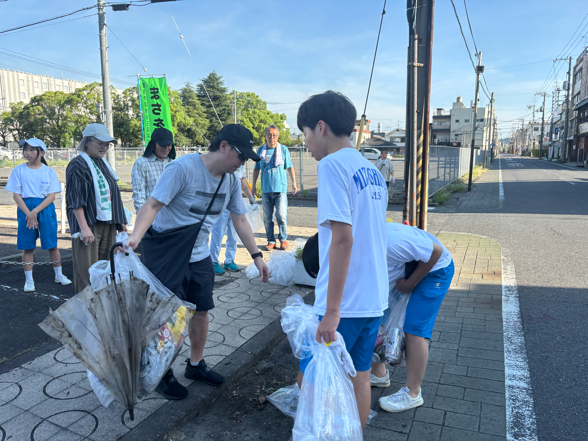 今日は地域一斉清掃の日です。朝早くからごみを拾っている地域の方をたくさん見かけました。また、中学生のみなさんも暑い中ではありましたが、多くの人が早起きをして参加してくれました。街がきれいになるのは本当に気持ちがいいものです。これからも美しい街づくりを進めていきましょう。