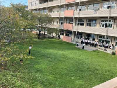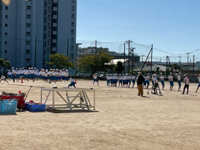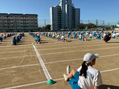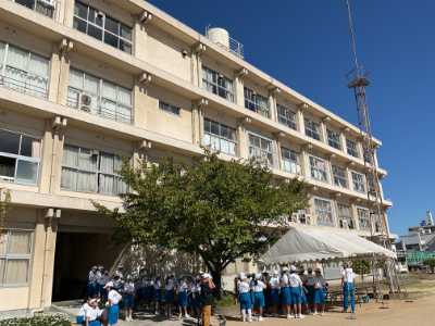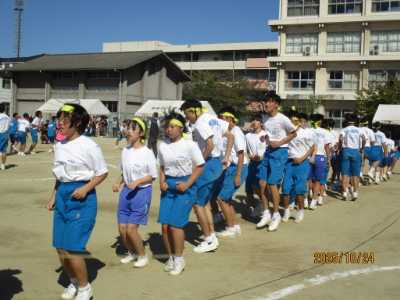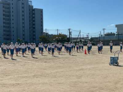 今日は中間考査2日目でした。テストが終わった時の解放感は何とも言えませんね。みんなスッキリとやり切った顔をしていました。そして、午後からは1,2年生合同体育があり、体育会に向けての練習を行いました。秋晴れで雲一つないさわやかな天候のもと、元気いっぱい頑張っていました。長縄練習では、「縄が緩すぎ!もっと張って!」「声出すよ」