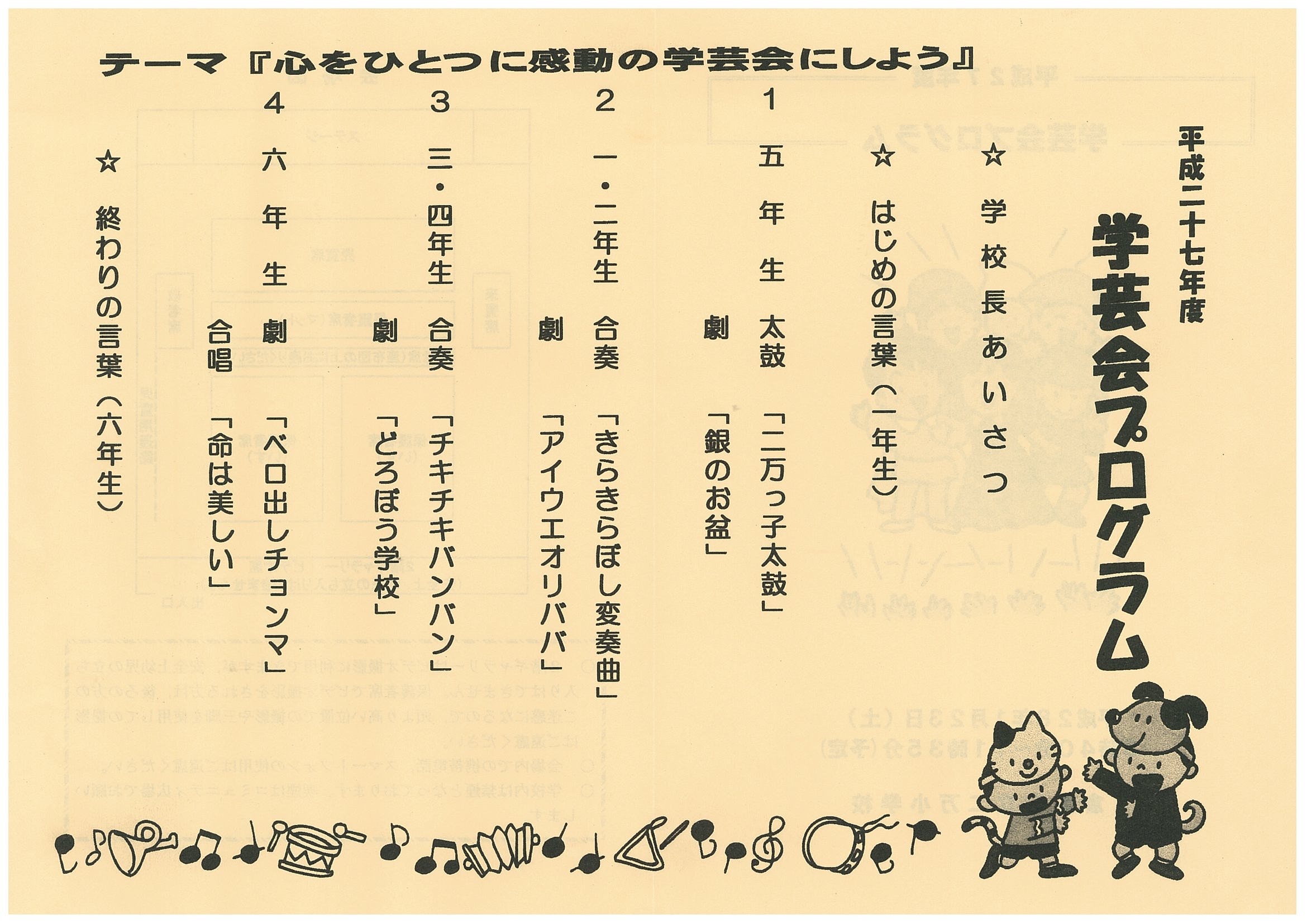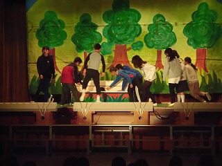 「心をひとつに感動の学芸会にしよう」をテーマに,一生懸命練習に打ち込んできた学芸会が行われました。 今年は,1・2年,3・4年合同で演技をしたり,劇だけでなく合奏や太鼓の演奏をしたりするなど,各学年でいろいろな工夫をして取り組みました。 これまで気持ちを合わせて練習してきた成果を生かして,演技や演奏をすることができ,見に来てくださった多くの家族や地域の方々から,たくさんの拍手をいただくことができました。 |