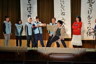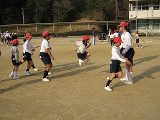 1時間目に,なわとび大会を行いました。 初めは,タイムトライアル。それぞれの学年で決まった時間跳び続けます。途中で引っかかった人もしっかり応援できました。 次は,なわとび名人コーナー。各学年のなわとび名人が登場し,すばらしい技の披露ができました。 最後は,長なわです。これまで,縦割り班で毎日練習してきたので,小さい学年の人も上手に跳べ,記録を伸ばすことができました。失敗した友達にやさしく声をかけたり励ましあって跳んでいたりする様子は,実にほほえましく,今朝はとても寒かったですが,温かい気持ちになりました。 |
