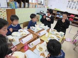 1月28日(木) | 二万幼稚園の園児の皆さんとの交流給食 (5年) |