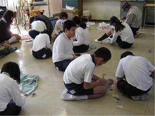 先日竹べらで皮をはいだ板を,今日は紙やすりでていねいに磨いていきました。粗い目の紙やすりから順次目の細かい紙やすりで磨いていくと,表面がすべすべになり木目がはっきり見えてきました。そして,米ぬかを入れた袋でさらに磨いていくと,つやが出てとてもきれいになります。最後に自分の好きな字を書くなどして,作品に仕上げていきます。 どんな作品に仕上がるか,とても楽しみになってきました。 |
