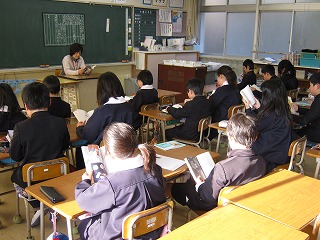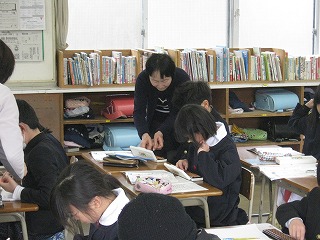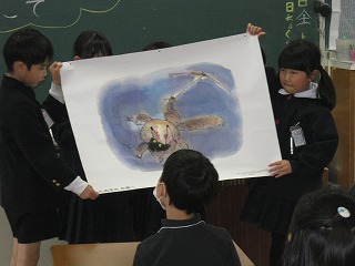 二万小学校では,月~水曜日毎朝全校一斉に「朝読書」をしています。2月からは,どの学年も「9類」(文学)の本を読むことを心がけ,先生もいっしょに読書をしています。 また,毎週水曜日はボランティアグループ「わたぼうし」の保護者のみなさんが,読み聞かせをしてくださいます。 今日は,6年生にとっては「わたぼうし」さんの読み聞かせの最後の日でした。「にじいろのさかな」の大型絵本を読んでいただいた後,一人ずつ感想やこれまでのお礼を言いました。そして「わたぼうし」さんから卒業記念品をいただきました。 卒業しても,読書をする習慣はずっと続けてほしいと思います。 |