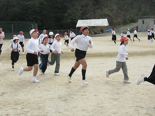 今日から26日(金)まで,寒さに負けず進んで運動に取り組むことをねらって,業間持久走を行います。音楽に合わせて,自分のペースで約3分間運動場を走ります。 昨日は暖かかったですが,今日はまた冬の天気に逆戻り。しっかり走って体を温めました。 |
