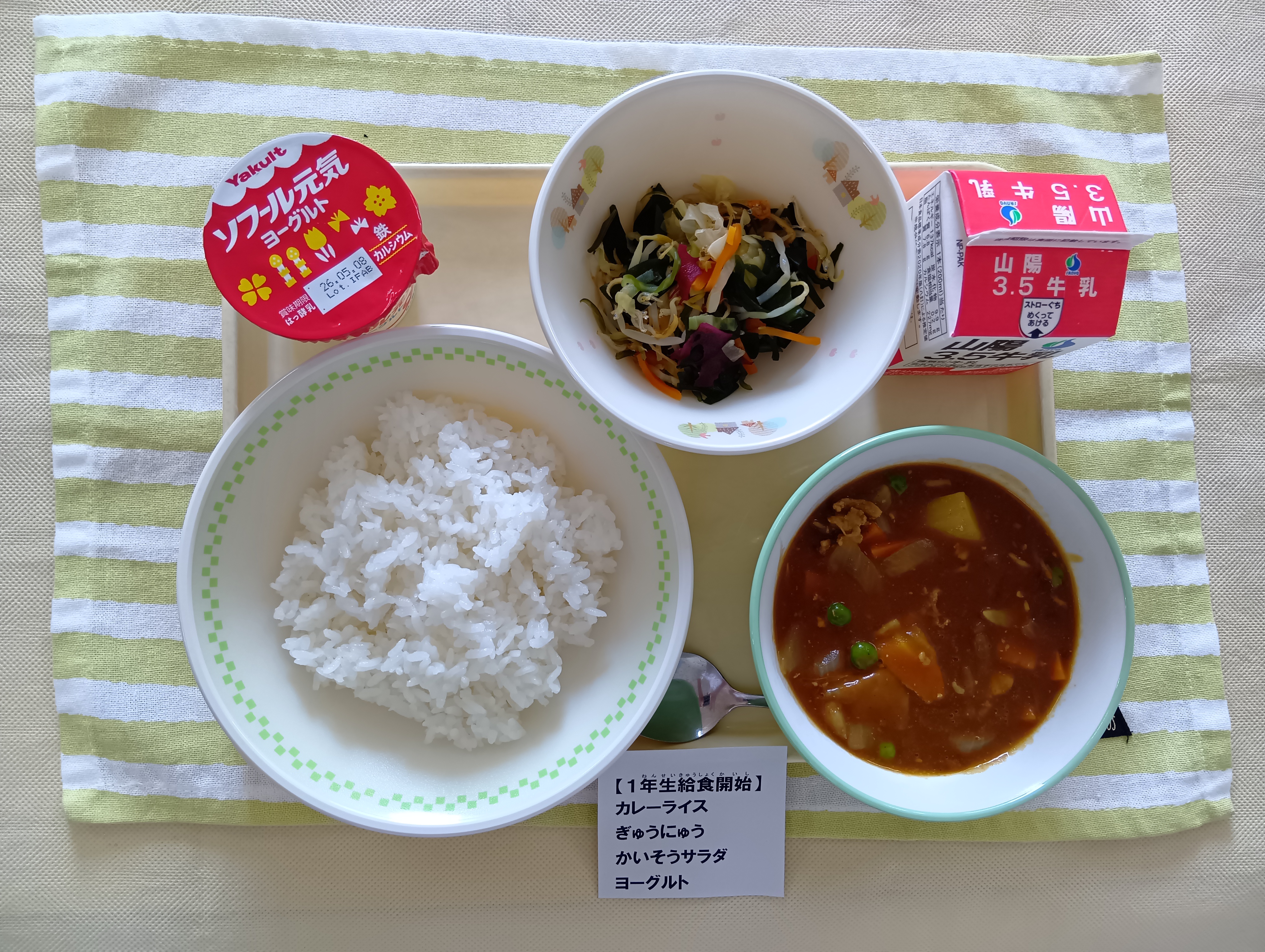カレーライス 牛乳 海藻サラダ ヨーグルト |