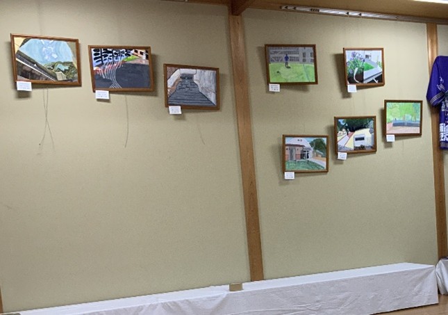 | 地域の文化祭に出展!!海上安全の守り神!『厳島神社(いつくしまじんじゃ)』で秋季例大祭に伴う文化祭が開催され、本校1年次生の美術選択者8名が出展しました。地域の方々は習字や写真、編み物など、趣味として続けているものを出展されていました。「厳島神社(いつくしまじんじゃ)」は地元で長く愛され続けている神社です。 神社があるのは倉敷市連島町西之浦。地元の方にとっては、「国道430号線から玉島に渡る『霞橋(かすみばし)』の東側」と言えばピンとくる方も多いのではないでしょうか。 この厳島神社がこの地に建てられた(勧請されました)のは、当時、この地域の住民の多くが海での漁業や交易で生計を立てていたからです。海は恵みをもたらす一方で、危険も伴います。そこで、「海上安全」と「大漁満足」を願う守護神として、島々の神様をこの地にお迎えしたそうです。      |