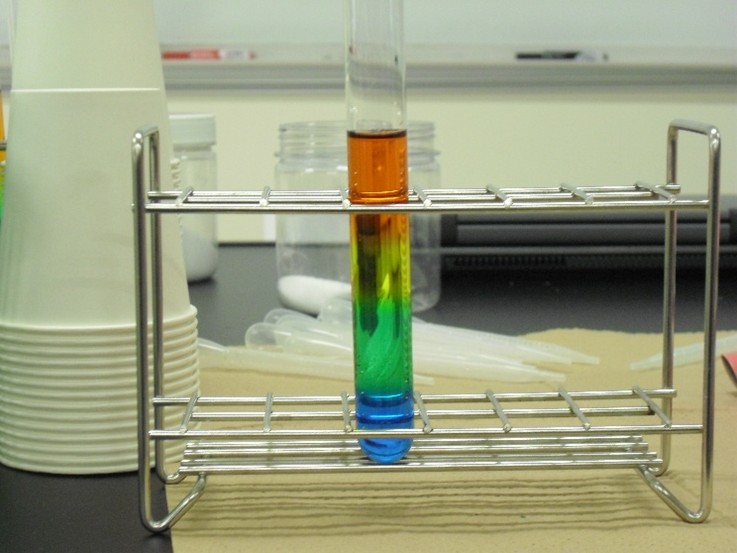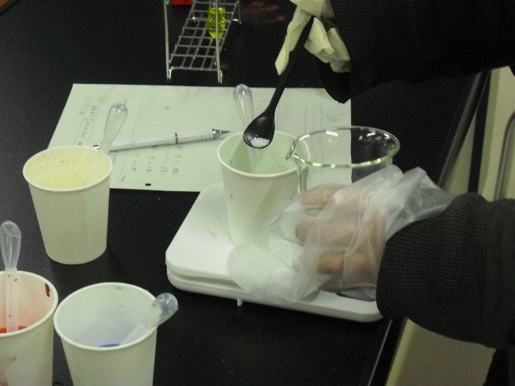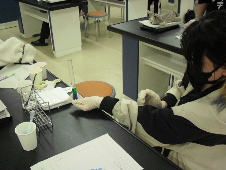 12月5日(金)、化学基礎の授業で、食塩を用いてカラフルな色水タワーを作る実験を行いました。生徒たちは、試行錯誤しながら色水タワー完成を目指し、楽しそうに頑張っていました。