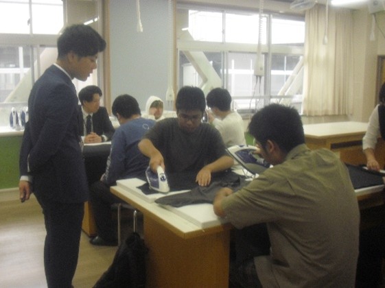 | 家庭総合 菅公学生服さんによるお洗濯授業10月21日(火)、家庭総合の時間に菅公学生服の方にお越しいただき、2時間に分けて「自分で洗濯ができるようになる」「自分でアイロンがけができるようになる」ことを目標に、お洗濯の授業をしていただきました。汚れが落ちる仕組みについて実験を通して確認したり、食べ物のシミ、皮脂や汗、化粧品、泥、血液汚れに対してそれぞれどのような前処理が必要なのかを学んだり、絵表示によって使用する洗剤や洗濯の仕方が変わることなどを教えていただきました。 また、アイロンについての授業では、自分の服を持参して実際にアイロンがけを行い、「初めてアイロンをかけたが、面白かった!」「普段は親任せになっているが、自分でやってみたいと思った」などの感想がありました。生徒たちは絵表示をそれぞれ確認し、隅々までとても丁寧にアイロンをかけた後、最後まできちんと畳み、とても綺麗に仕上げており、すっきりとした、すがすがしい表情をしていました。自分の服をアイロンがけするということで、より一層気合が入っていたように思います。 今回の経験を生かして、家庭でも積極的に洗濯やアイロンがけに取り組んでくれると嬉しく思います。       |