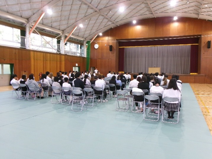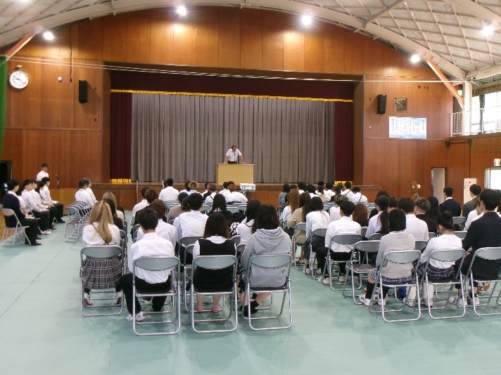 10月1日水曜日、体育館で後期始業式が行われました。校長講話では、周りと比較するのではなく、過去の自分と比較することが大切であるというお話がありました。