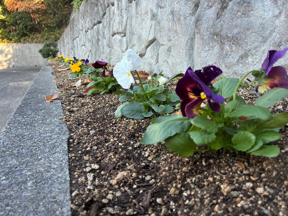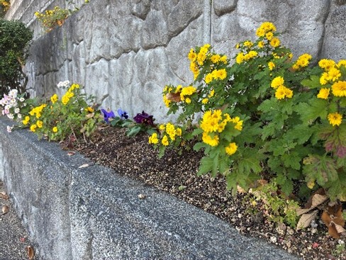 12月9日(火)、通学路には地域の方々と一緒に植えた花が美しく咲き誇っています。