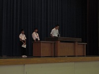 演説会では、どの立候補者も応援演説者も、前を向いて堂々と自分の意見を述べることができ、大変頼もしく感じました。挨拶運動や地域交流など、様々な公約が盛り込まれ、新執行部のリーダーシップの下、庄中学校の生徒の活躍の場がますます広がると思います。新執行部の皆さん、よろしくお願いします。