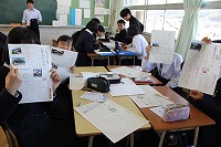 小学校で学習した庄地区の自然や歴史の内容を踏まえて、1年生では少し範囲を広げて郷土学習を行いました。班でテーマを決め、そのテーマに沿って個人課題を設定し調べ学習を行い、新聞やカルタを作成しました。11月20日(水)作成したカルタでカルタ取り大会を行いました。各クラスとも大変盛り上がりました。