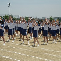 5月25日(土)今年一番の暑さの中、今年も庄小学校運動会にご招待いただき、吹奏楽部がドリル演奏を披露しました。リズム感あふれる2曲と小学校の校歌を演奏しました。見学席から手拍子をいただいたり、校歌では1年生が歌ってくれたりして一緒に盛り上げていただき、ありがとうございました。これからも小中の連携を深めていけたらと思います。