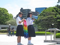 5月21日(火)1年生から取り組んできた平和学習の集大成として、素晴らしい青空の下で現地研修を行いました。平和集会では「平和の誓い」を読み上げ、厳粛な式を行いました。ボランティアガイドの方に平和記念公園内を案内していただいた後、班別自主研修で袋町小学校や本川小学校、爆心地、旧日本銀行広島支店等を訪れ熱心に見学しました。現在の平和を維持するために自分にできることは何かを考え、実行してほしいと思います。