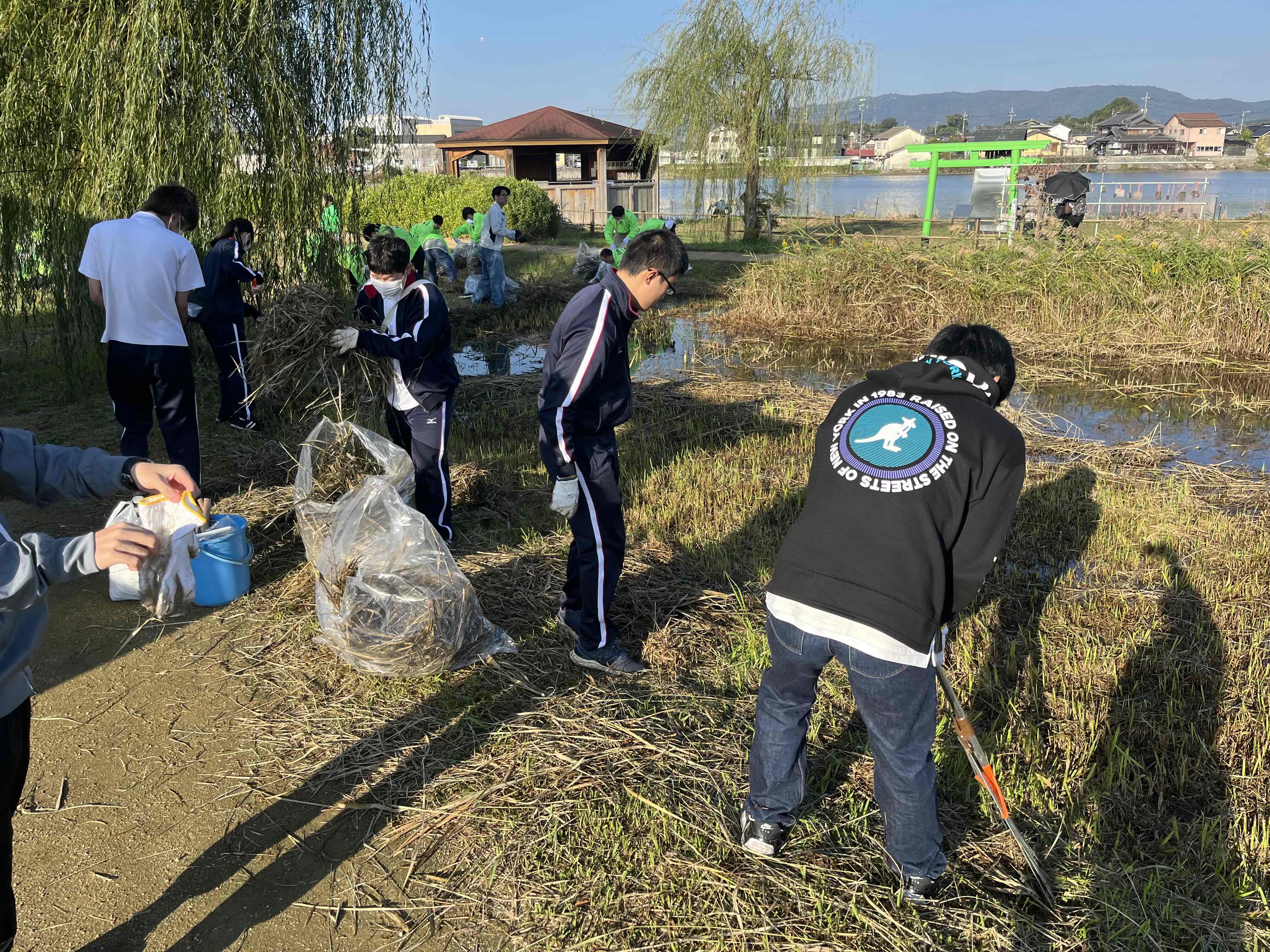 11月15日(金)に社会貢献活動として、普通科の生徒が溜川公園周辺の清掃活動をしました。袋いっぱいになるまでゴミを拾いました。真剣に清掃活動に取り組む姿が見られて良かったです。