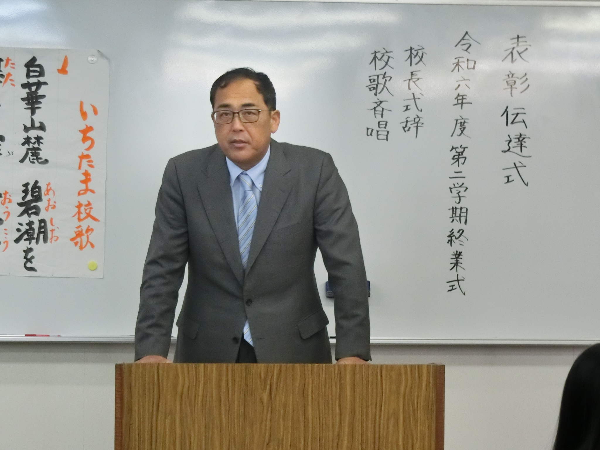 12月24日(火)に表彰伝達式と終業式がありました。校長先生からの式辞では、「皆さんの今年の漢字は変化の『変』であって欲しい。皆勤賞を目指すであったり、アルバイトを継続するであったり、この1年間目標もって生活し成長した(変化した)皆さんは、これからは何事も後回しにせず、今日を頑張って欲しい。そして、皆さんにとって素敵な1年にして欲しい。」とお話がありました。今日できることを明日に持ち越さず、一日一日を頑張っていって欲しいと思います。