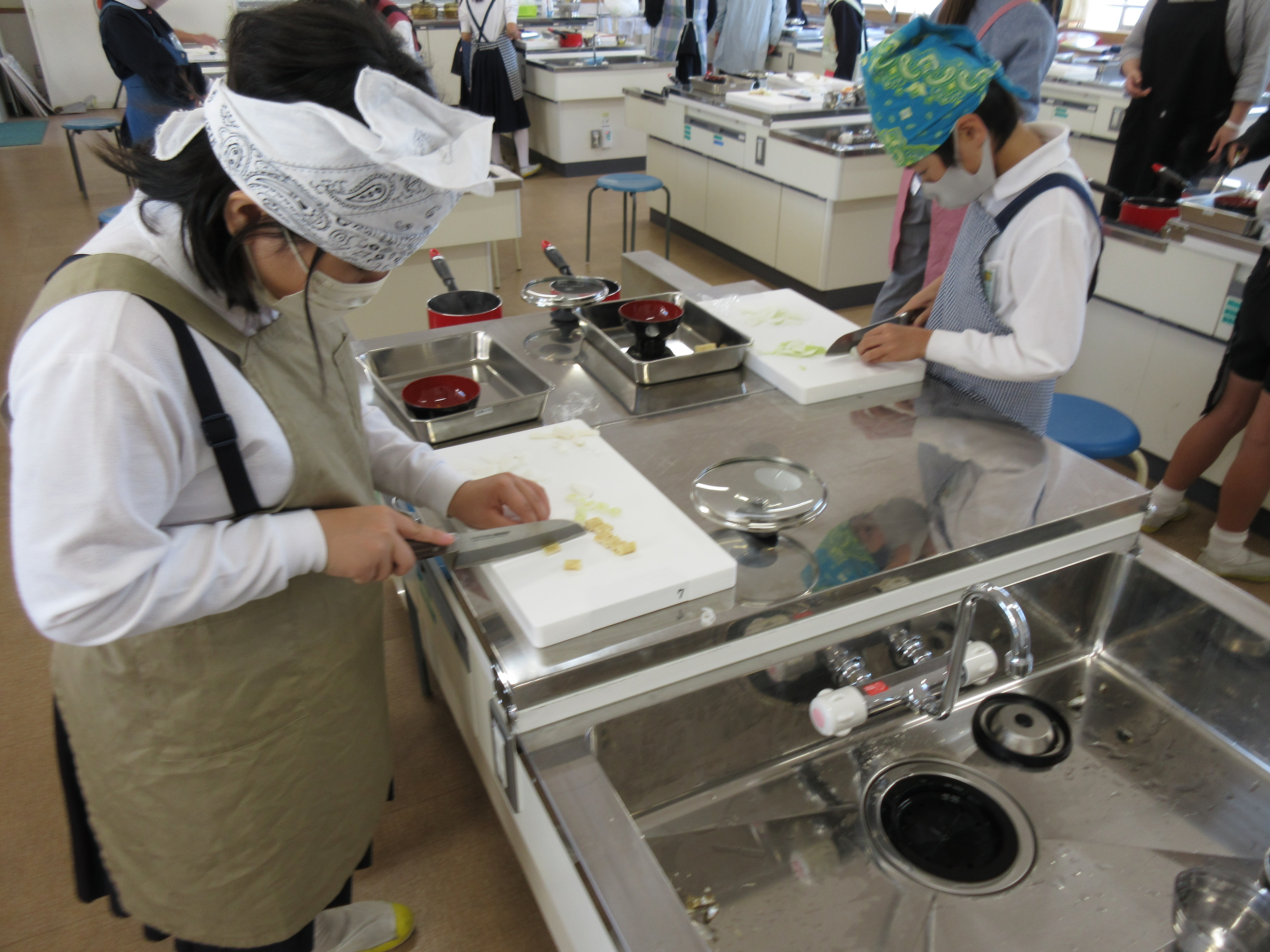 | 一人一鍋で感染症対策をしつつ、久しぶりの調理実習です | ||