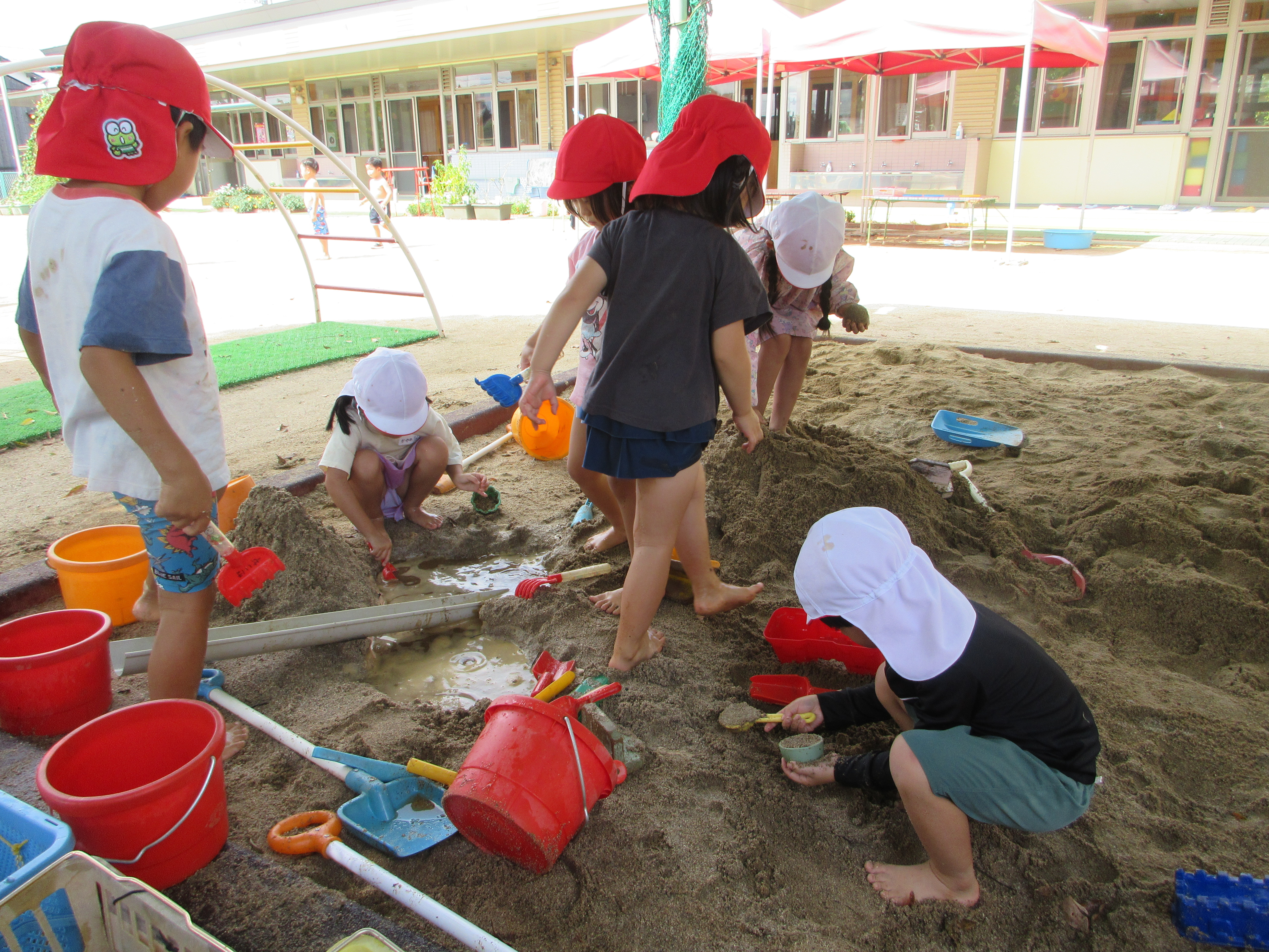 暑い夏は水遊び! 気持ちよくて楽しいね! |